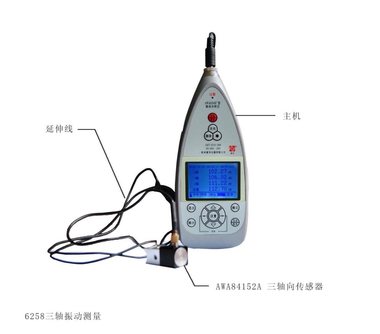 AWA6258型多功能振动分析仪是一种采用数字信号处理技术的多通道手持式分析仪,可以同时进行三轴向振动测量。它具有多种评价振动用的频率计权。可以进行全身振动测量、手传振动测量、环境振动测量,还可以对振动进行1/3 OCT频谱分析。